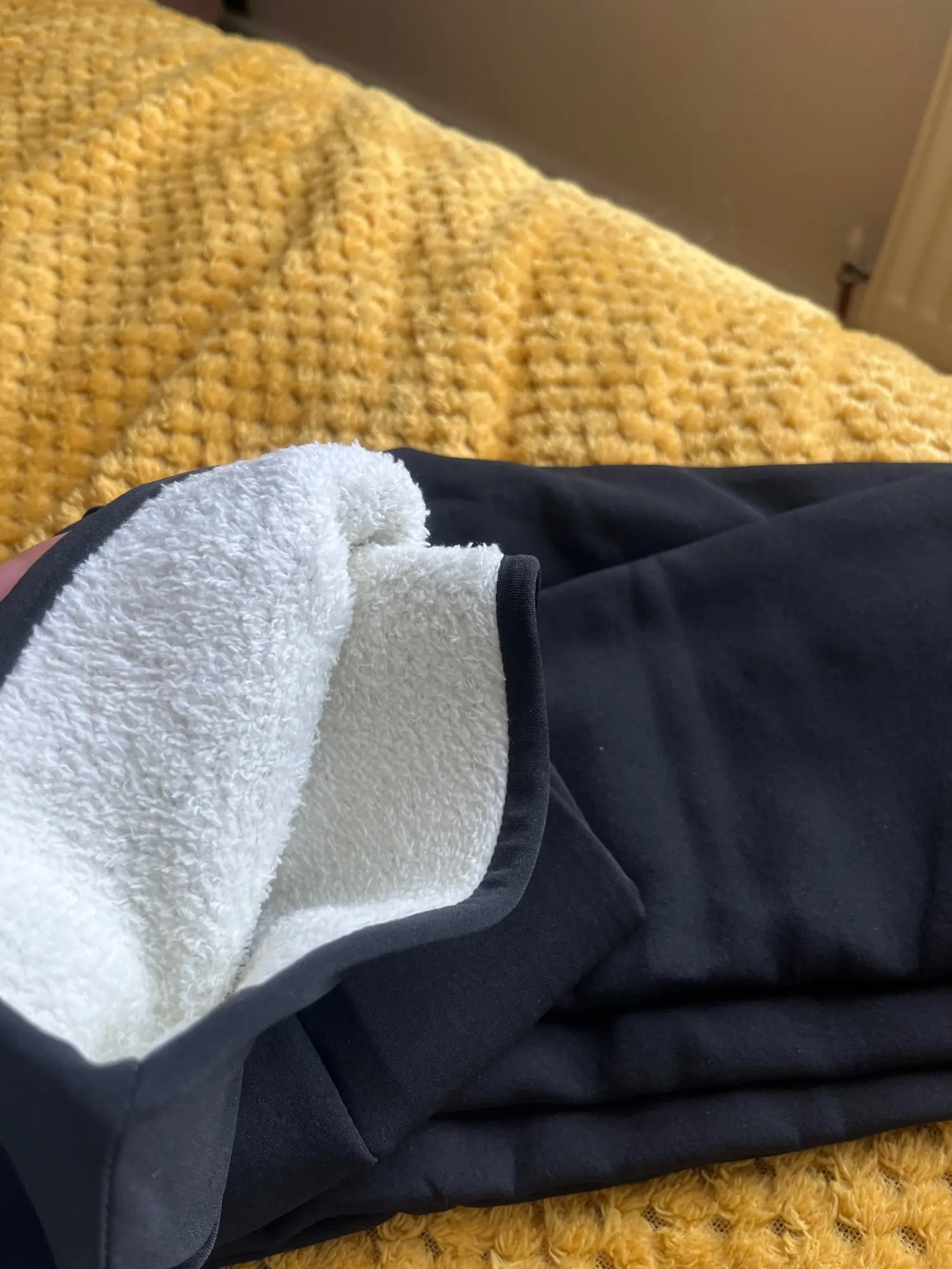 Material: Premium stretch fabric with soft fleece lining (usually polyester + spandex blend)